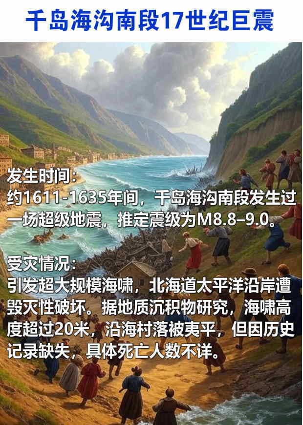 但南段最危险的十胜-根室海域未来30年M9.1级地震概率高达40%,若断裂将引发26米海啸,将淹没钏路、根室等城市。