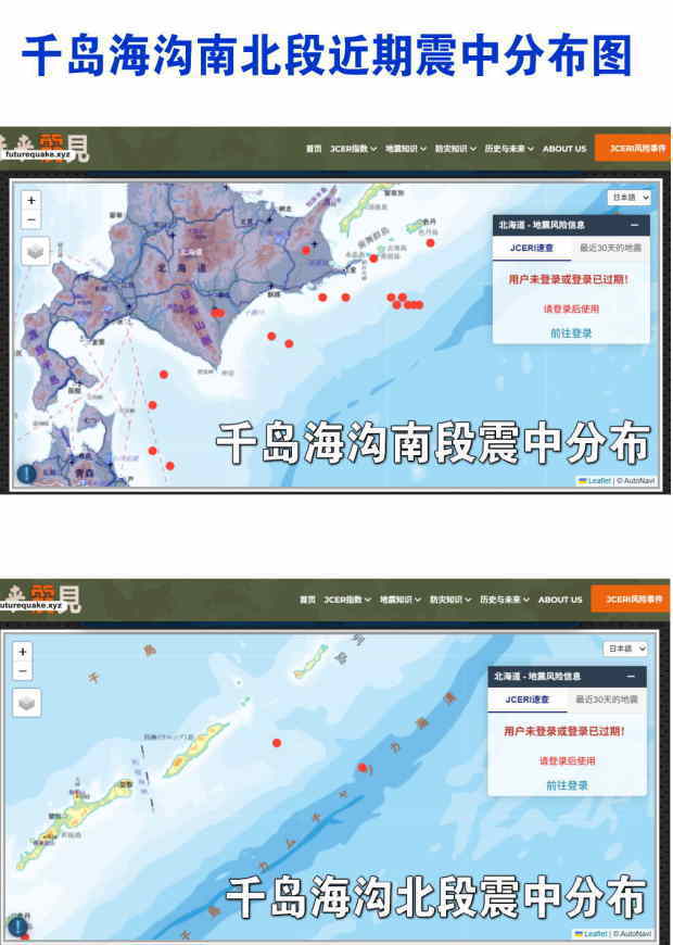 这两次地震的震中都位于板块俯冲带中段的千岛列岛,凸显出闭锁区能量突破的迹象。单次震级虽未达巨震水平(M8 ),但低频次高震级的地震正是北段地震带的特点,如果频次增加可能反映闭锁区应力接近临界。