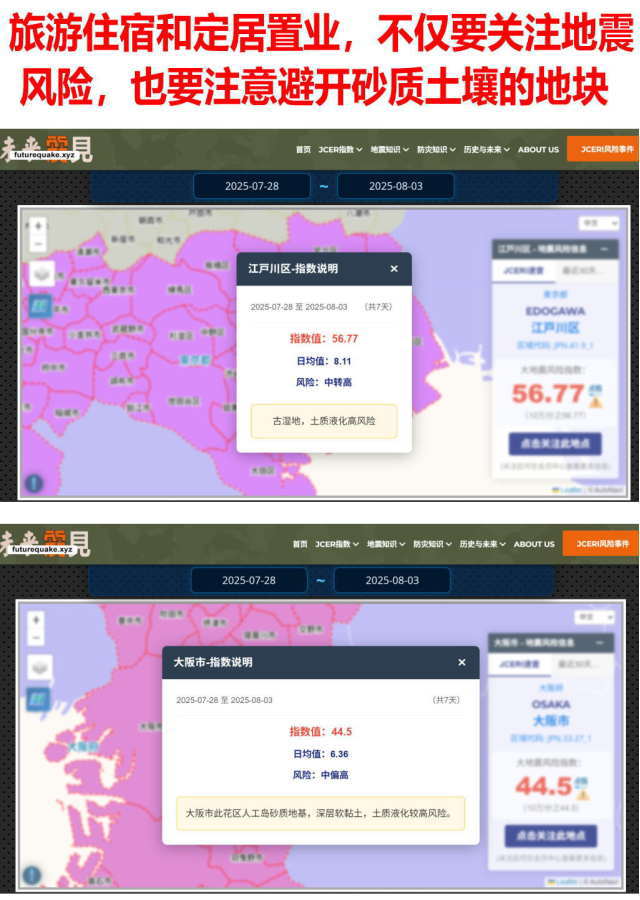 不管你是来日本旅游,还是要在日本置业,在选择住宿地或置业楼盘时,都不妨先查询一下目标地区的指数及有无这类地质风险,以免把安全建立在容易液化的砂质土壤上。