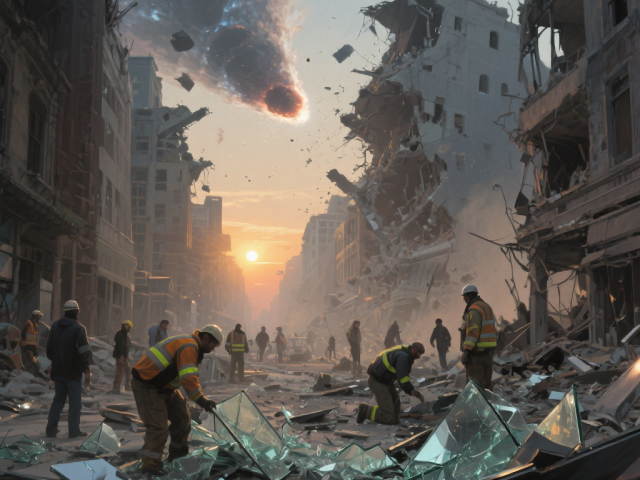 第二波:撞击引发12级地震与300米高海啸,摧毁地表文明。