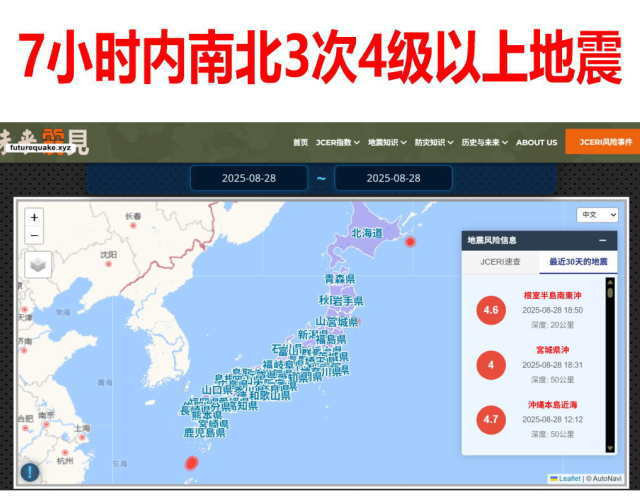 基于该机制,你可以把它想象成:整个日本列岛就像一个巨大的、充满压力的“应力锅”,今天这三个地方同时“呲”出了三股蒸汽。