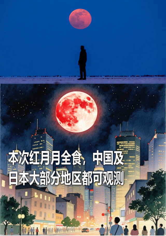 今晚(准确说是凌晨),一次中国大部分地区都可观测到的血月即将到来,这次红月月全食日本全国也都可以观测到,这也是约三年来首次全国范围内可见的月全食。