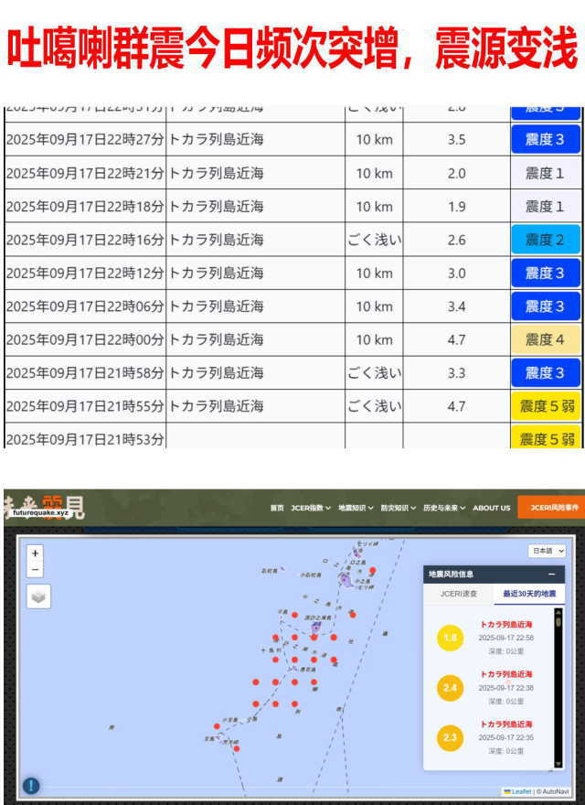 警惕:吐噶喇群震今日频次突增,震源变浅